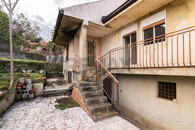 Rif: 30721708-43 Classe energetica: G RE/MAX presenta in vendita a Trecastagni, in via Cosenza, zona periferica, una soluzione indipendente da ristrutturare di circa 100 mq, immersa nel verde e circondata da un terreno di circa 6.000 mq. Il terreno, che avvolge completamente limmobile, è arricchito da un boschetto di pini e da alberi da frutto quali ulivi, arance e nespole, ideale per chi cerca tranquillità e contatto con la natura. Limmobile si sviluppa su due elevazioni per una superficie complessiva di 100 mq ed è così composto: Piano terra: ingresso su soggiorno con cucina e bagno; Piano superiore: due camere da letto abitabili, bagno e balcone perimetrale che circonda la casa. Completa il piano terra un terrazzino, che facilita laccesso diretto al terreno. La proprietà dispone di accesso carrabile, con possibilità di parcheggiare comodamente allinterno, oltre a un garage di circa 20 mq. Grazie alla sua posizione sopraelevata, limmobile gode di una splendida vista panoramica che si estende lungo la costa mare.