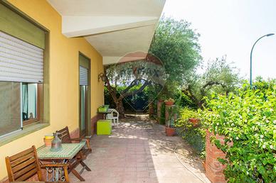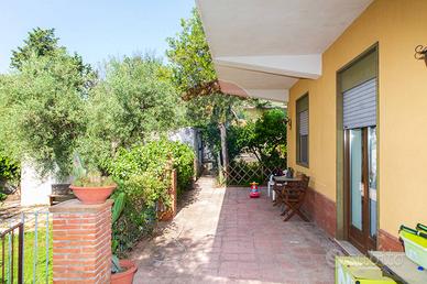 Tutto attorno alla villa abbiamo ampio terrazzo e un grande giardino che circonda tutto l'immobile, il giardino ricco di alberi e piante e soprattutto di fiori che rendono lo stesso, un luogo dove godere di un meritato riposo e di un benefico relaxrelax.