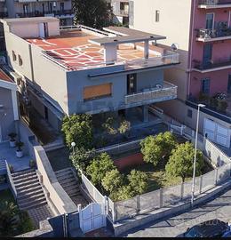 Rif: 30721179-292 Classe energetica: G Villa unifamiliare indipendente ampia metratura e soluzione bifamiliare In via Nizzeti, a Tremestieri Etneo, a due passi dal centro di Catania, presentiamo in vendita prestigiosa villa unifamiliare indipendente di circa 370 mq netti, disposta su due livelli, ideale sia come unica residenza di rappresentanza sia come soluzione per due o più nuclei familiari. Limmobile è attualmente suddiviso in due appartamenti distinti, entrambi dotati di ingressi separati, garantendo indipendenza e privacy: Piano terra: appartamento di circa 105 mq, composto da 5 vani, funzionale e ben distribuito. Piano terra e primo: ampia unità abitativa di circa 270 mq netti, composta da 11,5 vani, perfetta per chi desidera grandi spazi o una residenza di prestigio. Grazie alla distribuzione degli ambienti, è possibile unire le due unità e realizzare ununica grande villa, valorizzando ulteriormente gli spazi e rendendola una soluzione esclusiva. Completa la proprietà un terrazzo sovrastante di circa 250 mq, ideale come solarium, area relax o spazio panoramico. La villa dispone di doppio ingresso, pedonale e carrabile, che conduce a una comoda area parcheggio con posti auto coperti. A seguire, una piacevole zona terrazzata e giardino per un totale di circa 400 mq, perfetta per vivere gli spazi esterni in totale privacy. Grazie allampia metratura e alla distribuzione degli spazi, limmobile si presta anche a un utilizzo diverso dal residenziale, offrendo la possibilità di realizzare un centro uffici, uno studio associato o una struttura dedicata allassistenza per anziani, previa verifica delle normative urbanistiche vigenti. Soluzione versatile, in posizione strategica e ben collegata.