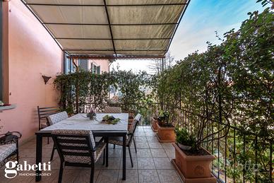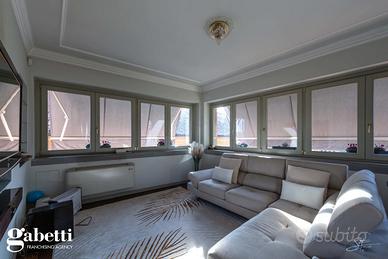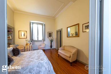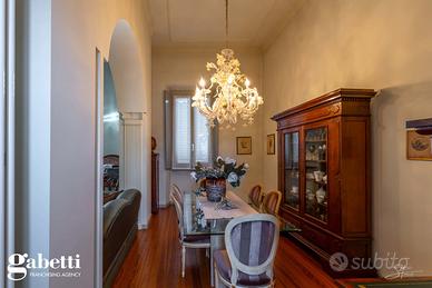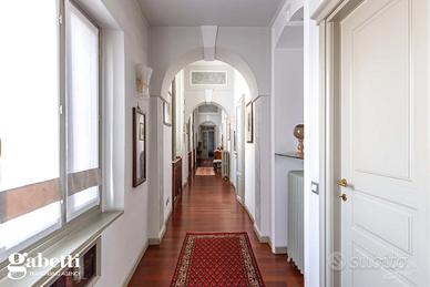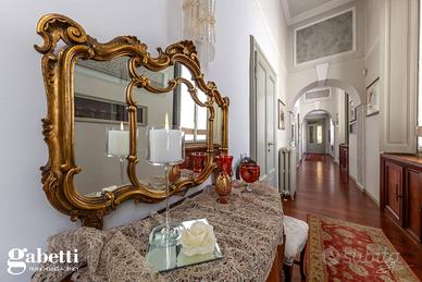 La proprietà immersa nel parco privato, si sviluppa su una superficie di 409 mq, distribuiti principalmente su unico livello al piano primo, oltre il caratteristico/storico ingresso dal piano terra. Al primo piano troviamo un luminoso soggiorno doppio con zona tinello pranzo, una grande cucina abitabile, doppi servizi, sono presenti tre spaziose camere da letto, un guardaroba, terrazzino immerso nel verde e caratteristica stanza tv.