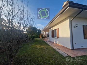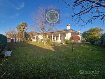 Cordenons Frazione di Villa D'Arco vendesi villa signorile di ottime rifiniture realizzata nel 1994 su lotto di terreno di 1120 mq. La casa si sviluppa principalmente al Piano terra con un ampio ingresso, dal quale si accede alla zona notte separata e all'area living molto luminosa dove troviamo una cucina separata, una sala pranzo ed un ampio soggiorno, predisposizione canna fumaria per caminetto o stufa interna, l'accesso diretto al meraviglioso portico dove vi è situato un caminetto/barbeque è garantito da diverse porte presenti nel soggiorno e sala da pranzo. Le tre camere ampie sono servite da due ampi bagni uno con doccia ed uno con vasca. Sempre al Piano terra troviamo un ripostiglio ed un disbrigo con armadio a muro, completa un ampio garage di 42 mq con doppio basculante automatizzato dove possono trovare riparo due auto. Al Piano Interrato troviamo un disimpegno dal quale si accede ad una cantina, una taverna riscaldata con termoconvettore ed una ampia centrale termica. La casa è stata ristrutturata nel 2010, gli infissi interni sono in legno Yellow Pine con doppio vetro alle finestre, con zanzariere e scuri in legno naturale IROKO all'esterno, nello scantinato invece le finestre sono in alluminio con zanzariere, l'impianto di riscaldamento è in rame così come i termosifoni tubolari ultima generazione con termovalvole e caldaia a condensazione FERROLI a basamento. La casa è dotata di due pompe di calore che garantiscono sia la climatizzazione d'estate che il tepore delle mezze stagioni autunnali. All'interno dell'abitazione è stato realizzato un isolamento termico con cappotto in stiferite, è presente al piano terra il vuoto sanitario. L'immobile è allacciato alla rete idrica comunale, metanodotto e fognatura. All'esterno troviamo un meraviglioso giardino ben curato e con una buona privacy, le ottime rifiniture, l'ingresso carraio automatizzato e l'accessibilità diretta al Piano Terra rende questa villa un'ottima soluzione anche in considerazione