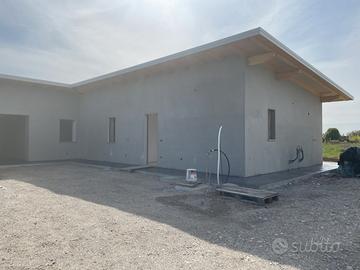 In fase di ultimazione vendesi introvabile villa unifamiliare ad un piano in classe energetica A4 con amplio giardino di proprietà vicino al centro, ma in zona riservata e tranquilla. Spaziosa zona living, open space, disposta a sud verso il giardino con vetrata di ben 5 mt ad illuminarla. Tre camere di cui una matrimoniale con cabina armadio. Due bagni dalle generose metrature, dei quali il padronale con piatto doccia di ben metri 1 x 1,90. A completare l'immobile una comoda lavanderia e un garage di più di 40 mq. Amplia tettoia esterna per pranzare all'aperto o creare una zona relax. Riscaldamento a pavimento con pompa di calore. Fotovoltaico da 6 Kw. Antenna tv. Pavimenti in gres porcellanato di prima scelta. Porte interne con cerniera a scomparsa e calamita. Serramenti PVC triplo vetro con zanzariere e avvolgibili in alluminio nella zona notte. Videocitofono e portone motorizzato. Oltre all'illuminazione standard è stata predisposta l'illuminazione a led. Predisposizione: clima, vmc puntuale e antifurto perimetrale. Per la realizzazione di questo immobile sono stati impiegati tra i migliori professionisti del settore edile per avere un prodotto di qualità superiore.