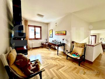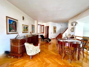 Al piano terra troviamo il salone ampio e luminoso, che si articola su tre livelli creando un ambiente unico e scenografico. A rendere ancora più accogliente l'atmosfera vi è un CAMINO BIFACCIALE, perfetto per scaldare e valorizzare due ambienti contemporaneamente. Continuiamo con un grande studio, la cucina principale ampia e funzionale ed una comodissima lavanderia.