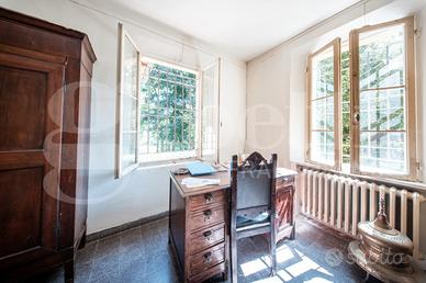 Sulle incantevoli colline di Monteveglio, si erge una villa padronale degli anni '40, che affascina con il suo carattere storico e la sua posizione privilegiata. L'accesso alla proprietà avviene attraverso un lungo e scenografico viale alberato, che si snoda all'interno di un esteso parco di 6000 mq.