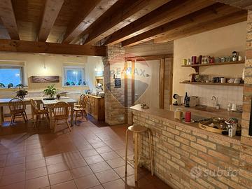 La casa padronale, con una superficie di oltre 550 mq catastali, si sviluppa su 3 piani. Al piano terra lo splendido soggiorno, con la cucina arredata su misura e numerosi spazi di servizio e accoglienza.