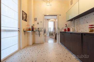 La ristrutturazione è stata curata nei minimi dettagli, valorizzando i materiali e gli elementi originali quali pavimenti, porte e scala, ulteriormente esaltati da un suggestivo lampadario in cristallo che si sviluppa verticalmente dal soffitto del...