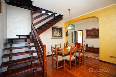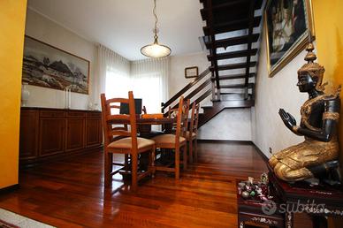 Al piano rialzato caratterizzato dalla luminosità, abbiamo la zona giorno con cucina abitabile servita da balcone, sala da pranzo e soggiorno anch'esso servito da balcone; un bagno finestrato ed una camera matrimoniale con cabina armadio. Tramite comoda scala si accede al piano superiore con zona studio e salottino, ulteriori due camere matrimoniali servite da balcone e bagno finestrato.