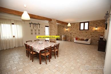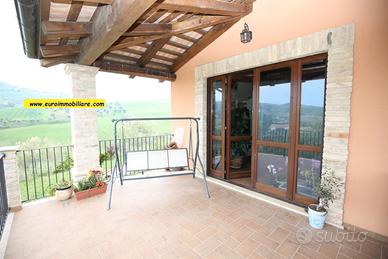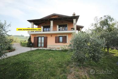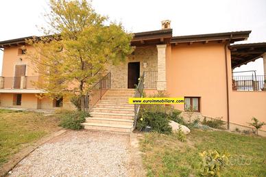Pineto, a poca distanza dal centro, in zona riservata, silenziosa e panoramica con splendida vista mare e colline, proponiamo in vendita una villa su 3 livelli immersa in un parco privato di circa 7800 mq, illuminato e arricchito da piante da frutto e ulivi L'ingresso alla proprietà, tramite vialetto alberato e cancello automatico, introduce a un contesto curato e di grande privacy, con giardino dotato di impianto di irrigazione alimentato da raccolta di acqua piovana. Il piano rialzato ospita un'accogliente zona giorno con ampio soggiorno con camino artigianale, cucina a vista, soffitti con travi in legno e accesso a una terrazza panoramica vista mare. La zona notte comprende 4 camere (di cui 3 con balcone), studio, 2 bagni, ripostiglio e guardaroba. Al piano superiore troviamo una soffitta pavimentata con bagno. Il piano seminterrato offre ampi spazi versatili con grande taverna con camino, lavanderia, studio, bagno e garage, con possibilità di realizzare un appartamento indipendente. Costruita nel 2013, la villa si presenta in condizioni eccellenti, con finiture di qualità, riscaldamento a pavimento e predisposizione per fotovoltaico. Una soluzione ideale per chi cerca tranquillità, spazio e comfort a pochi minuti dal mare e dai servizi