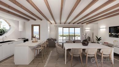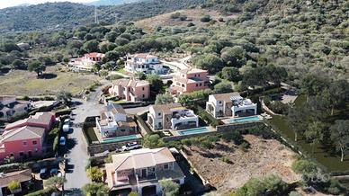 Lussuosa villa con piscina. Vista Mare Elegante e raffinata villa con piscina e vista mare Cod. 147 San Teodoro Località Suaredda La residenza LE VILLE SUARE' è ubicata a San Teodoro (SS), in loc. Suaredda di Supra, una splendida borgata alla periferia del centro abitato, che gode di una splendida vista sul mare, sullo stagno e sull'Isola di Tavolara, a diretto contatto con la natura e il verde rigoglioso circostante. Queste ville singole di nuova costruzione rappresentano la scelta ideale per chi cerca una casa esclusiva, moderna e con tutti i comfort. Situata in un contesto tranquillo e residenziale, la proprietà si sviluppa su due livelli e offre spazi ampi e luminosi. La location dista circa 2 km dalla rinomata spiaggia della CINTA, 2 km dal centro cittadino, inoltre a circa 20 km è possibile raggiungere l'Aeroporto e Porto di Olbia e circa 25 km per la Costa Smeralda. Sull'area in oggetto, è prevista la realizzazione di 3 ville esclusive, tutte con box auto doppio di 30 mq, con superficie commerciale di oltre 200 mq ciascuna, in fase di realizzazione, complete di piscina interrata, rifiniture di alcune pareti in pietra granitica tipo giallo San Giacomo/Ovodda, recinzione del bordo lotto con pietra granitica locale, pavimenti effetto pietra naturale chiara, interazione domotica sui principali elementi della Villa, e altre finiture Luxury rispetto agli standard della zona. Caratteristiche principali: - Tre camere da letto matrimoniali, molto spaziose , ideali per tutta la famiglia, con ampie finestre vetrate che garantiscono luminosità naturale. - Tre bagni di design, dotati di finiture moderne e funzionali, tutti finestrati. - Un'ampia zona giorno che si affaccia sulla veranda e piscina , perfetta per momenti di relax e per accogliere gli ospiti in un ambiente confortevole e raffinato. - Veranda e terrazza panoramica con vista mozzafiato sul mare, sullo stagno e sull'affascinante isola di Tavolara, ideali per godersi una splendida alba al sorgere del sole sull'o