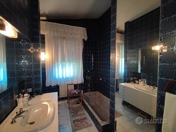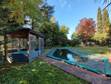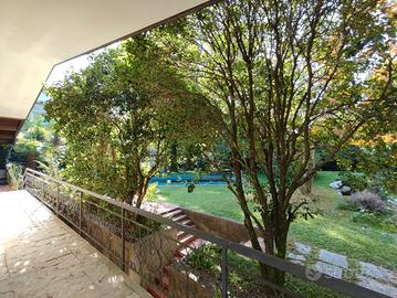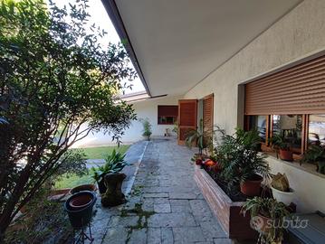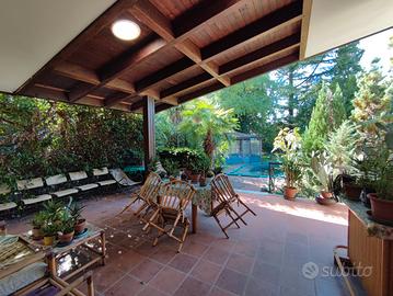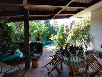 La villa è circondata da un ampio giardino con piscina e vasca idromassaggio, con un terrazzo e un porticato che invitano a godere dell'aria aperta.