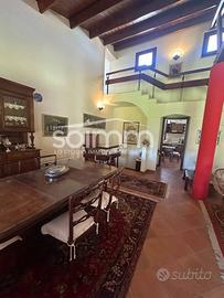Proponiamo in VENDITA splendida villa al centro del paese di Siurgus Donigala dentro il territorio della Trexenta. Il piccolo comune della provincia del Sud Sardegna si trova in posizione centrale, a circa 50km da Cagliari, e a 15 km dalla principale arteria di collegamento regionale (s.s. 131); la piccola comunità di circa 1800 abitanti, posta a circa 450 m s.l.m., è spesso meta e residenza per chi ama vivere in un contesto riservato e tranquillo, ma allo stesso tempo dotato di tutti i servizi connessi con la residenza. La cittadina è ricca di grande storia culturale, nelle immediate vicinanze infatti si possono ammirare numerosi villaggi nuragici ricchi di fascino, come alcuni parchi archeologici naturali, la presenza di numerose bellezze naturali come il Lago Mulargia, uno dei pochi laghi navigabili della Sardegna, splendido scenario per escursioni in bici, a cavallo, in canoa, o su battello o col Trenino Verde. Sita nella via principale del paese, la dimora offre numerosi spazi al chiuso e all'aperto con un ampio e ben tenuto giardino oltre ad piccolo orto. All'abitazione si accede attraverso un ampio cancello carrabile e pedonale che dà direttamente su ampio giardino ben curato e ricco di diverse piante di agrumi, olivi e alberi da frutto, per una superficie totale di circa 860 mq. L'unità internamente è distribuita su due livelli principali, piano terra totalmente e finemente ristrutturato di circa 124 mq, e un piano primo di ulteriori 153 mq ove sono presenti 4 ampie stanze da letto e 150 mq di terrazze. Completa la distribuzione interna un locale cantina di 70mq. La villa è dotata di camino a legna, stufa a pellets, impianto di riscaldamento a termosifoni e caldaia a gas e termo-condizionamento. Rif. PM210