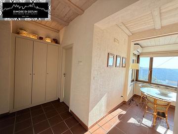 Disposta su due livelli con una superficie di circa 150mq progettata per garantire massimo comfort e funzionalità, ad accoglierci vi è una spaziosa zona living con un ampio salone doppio servito di caminetto ed impreziosito da una meravigliosa vetrata da cui ci si perde in una vista mozzafiato, dalla Selva alla Marina con abbondante luce naturale. A seguire vi è la cucina completamente attrezzata, integrata armoniosamente con gli spazi aperti, anch'essa dotata di ampia vetrata vista mare. Completano il piano una camera da letto matrimoniale ed un elegante bagno con cabina doccia.