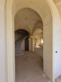 La villa, particolarissima nel suo genere, è stata realizzata fondendo gli antichi canoni di costruzione delle dimore salentine con la moderna architettura. Stupende finiture in pietra leccese e tufo di primissima scelta per realizzare ampie volte faccia a vista.