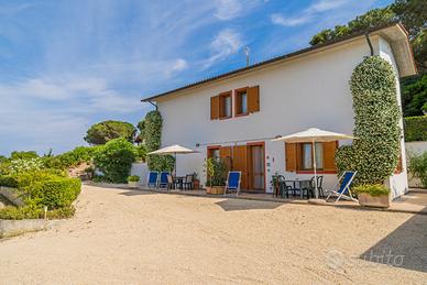 Vendesi villa indipendente con appartamento padronale, suddivisa in 4 unità, come nuova, finiture di pregio, completamente arredati. Ampia cantina con bagno di servizio, lavanderia, posti auto coperti. Ampio giardino e vista mare.