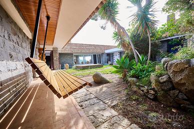 Adornata dalla splendida cornice della scogliera di Torrazzo nella località marina di Staletti, con una vista privilegiata sulla baia di Copanello, proponiamo in vendita un'autentica villa da Sogno. Immersa in un parco naturale di pini e piante ornamentali tipiche della zona, la villa costruita a metà degli anni 60 è un autentica prova della modernità e avanguardia per quegli anni ma allo stesso tempo attuale per tutte le caratteristiche che la compongono e che tutti desideriamo avere nella casa dei nostri sogni. L'accesso al giardino attraverso un riservato ingresso ci porta direttamente nell'area esterna del grande patio antistante la casa e all'ampio garage collegato con l'interno dell'abitazione. Entrando si può subito apprezzare il salone principale con camino centrale e con le vetrate che affacciano sulla grande terrazza e in continuità sulla piscina. La sala da pranzo completa di cucinino a vista e con un altro camino ha accesso diretto al giardino interno. Sullo stesso piano sono presenti 4 camere da letto e due bagni di cui uno ad uso esclusivo della camera principale. Tutte le camere godono del panorama circostante e nel giardino interno, la piscina è riscaldabile e dotata di un motore per la simulazione di onde. Al piano sottostante è presente una caratteristica sala o taverna a cui si accede dalla scala interna o direttamente dall'esterno e collegate alla stessa ci sono altre camere fra cui si contraddistingue la camera con un oblò diretto in piscina e un altro bagno. Sono presenti sullo stesso piano i locali tecnici, la lavanderia, la cantina dei vini e l'ampio garage con diversi posti auto. All'interno della proprietà, distaccata dal fabbricato principale e con un accesso privato su strada è presente una dependance composta dalla zona living, due camere da letto, bagno e in adiacenza al fabbricato c'è anche un locale...