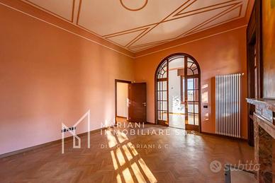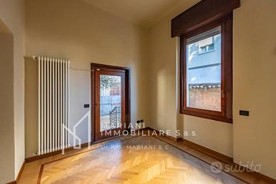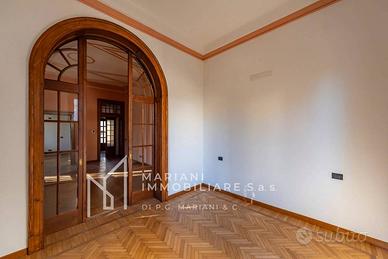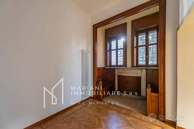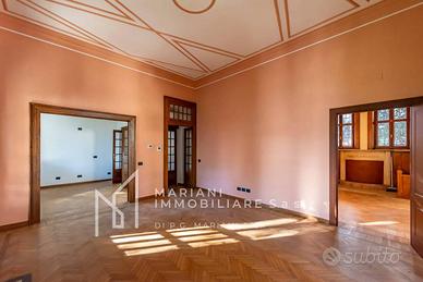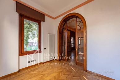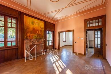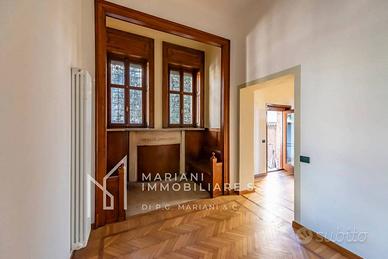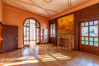 Rif:Bus563 (125602751) - Villa storica completamente ristrutturata e rimessa a nuovo in ogni sua parte, pronta da abitare. La dimora risalente agli anni '30 interamente ristrutturata a nuovo nel 2019 è tutelata dalla Sovrintendenza delle Belle Arti. E' una dimora esclusiva che si sviluppa su tre piani oltre ad un piano -1 cantinato. grazie ai doppi attacchi cucina è possibile utilizzarla per due unità abitative indipendenti, è perfetta per famiglie numerose o per uno studio professionale di grande rappresentanza. Al piano terra si trovano cucina, sala da pranzo, soggiorno con camino, due camere e due bagni. Al primo piano si trovano seconda cucina, grande soggiorno con zona pranzo, camera con cabina armadio e bagno privato, camera ospiti e terrazza di 30 mq esposta a sud. Al secondo piano quattro camere, due bagni e ripostigli. Completa la proprietà un piano seminterrato collegato internamente, con cantine, lavanderia e locale caldaia. All'esterno si trova il giardino sapientemente piantumato con alberi secolari, vialetti curati e due box auto con sezionale motorizzata. La villa gode di doppio accesso, pedonale da Via Quintino Sella e carraio da Via Parini, oltre a tre ingressi indipendenti al piano terra. Inoltre accanto al terreno della villa insiste un terreno edificabile della stessa proprietà anch'esso in vendita separatamente ad un prezzo di €50.000. L'intervento di ristrutturazione ha valorizzato materiali originali come travi a vista, pavimenti in parquet in rovere posato a spina Italiana, scale in marmo bianco di Carrara e camini in pietra, integrando impianti moderni per garantirne l'efficienza energetica. In dotazione all'unità troviamo due caldaie Vaillant appena sostituite, porte interne Garofoli, impianto di antifurto perimetrale e volumetrico, predisposizione impianto di climatizzazione e tapparelle motorizzate. Un restauro impeccabile che u - Classe: F - IPE: 175.00 kWh/mq anno