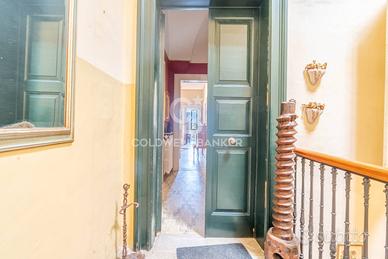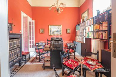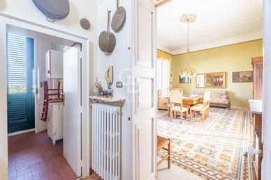 Al piano nobile, raggiungibile tramite una scalinata d'epoca, si apre un ampio e luminoso salone doppio con le caratteristiche volte a stella, affacciato su via Umberto I e impreziosito da un elegante balcone. Le pavimentazioni originali in cementine dell'epoca e i raffinati pavimenti in graniglia di marmo sottolineano l'attenzione per i dettagli e la cura dei particolari che caratterizzano questa residenza d'eccezione.