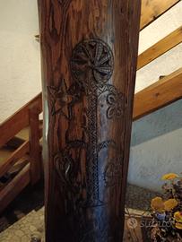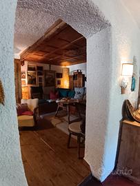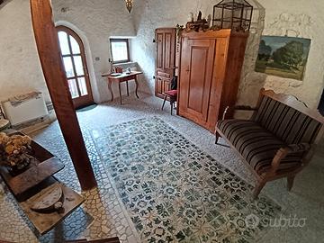 Entrando, si viene accolti da un maestoso atrio con una colonna in legno sulla quale è stato scolpito l'albero della vita e un pavimento decorato. La casa si sviluppa su tre piani, con una cucina in muratura, un soggiorno accogliente e una mansarda open space ideale per il relax.