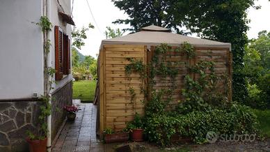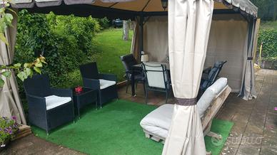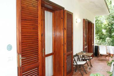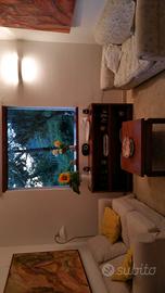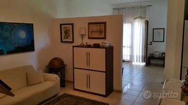 UNITA' A: su due livelli. Al piano terra soggiorno +pranzo + camera + cucinotto e bagno con piastrellato con due gazebo all'esterno. Al piano superiore vi è una camera matrimoniale con bagno e balcone.