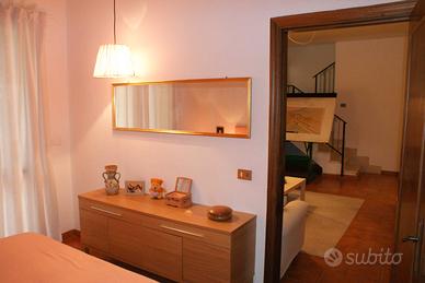 UNITA' B: su due livelli. Al primo livello soggiorno, camera+ cucinotto e bagno e balcone. Al piano superiore tre camere e bagno sottotetto.