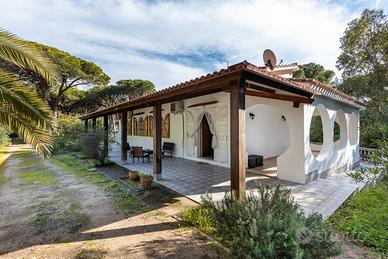 Santa Margherita di Pula, all'altezza dell'Hotel Rocca Dorada lungo la s.s. 195 (lato mare prima di Pinus Village), la villa che ti proniamo non si trova all'interno di uno dei tanti residence confusionari, bensì in posizione riservata e silenziosa all'interno di una pineta, così da essere un luogo dove godersi la pace e il silenzio anche nei periodi di punta della stagione estiva vista la distanza con le ville circostanti.