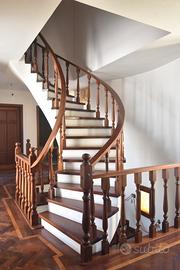 mentre nella parte sinistra troviamo la zona giorno composta da: soggiorno, sala da pranzo con camino, bagno, cucina, il loggiato di circa 30 mq e la lavanderia.