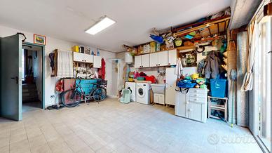 Proseguendo al piano seminterrato troviamo un ampio garage doppio con spazio sufficiente per due auto e comodo accesso, ideale anche come area di deposito.