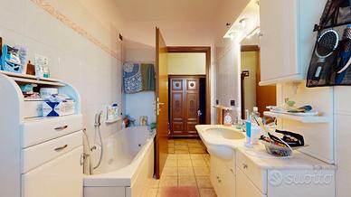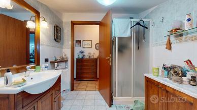 Un disimpegno conduce alla zona notte, composta da una camera matrimoniale e una singola, quest'ultima dotata di accesso ad un balcone, oltre a un bagno ben rifinito e completo di ogni servizio.