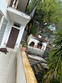 La villa è suddivisa su tre livelli, ed è composta da 5 stanze, 5 bagni, 2 cucine abitabili con annessi due grandi terrazzi, un ampio appartamento con angolo cottura e bagno e due ripostigli. Il tutto contornato da un grande giardino di oltre 1000 metri quadrati con olivi ed alberi da frutta. Un parcheggio coperto per tre grandi auto , più uno scoperto. Si adatta bene come struttura ricettiva. Prezzo trattabile.