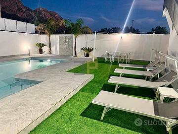 Rif: TCPT Classe energetica: A1 Elegante villetta indipendente con piscina in vendita a Terrasini, recentemente ristrutturata e immediatamente abitabile. Limmobile si apre su un ingresso con cancello automatico che conduce a un ampio patio, ideale come comodo parcheggio privato. La zona esterna, pensata per il massimo relax, è caratterizzata da una scenografica area piscina circondata da prato sintetico e da un ampio solarium dove prendere il sole in totale privacy; un gazebo attrezzato completa gli spazi esterni, perfetto per pranzi e cene allaperto in unatmosfera riservata e confortevole. Gli interni, luminosi e curati, offrono due camere matrimoniali accoglienti, una zona giorno con cucina a vista che privilegia la convivialità e un bagno ampio e rifinito con materiali di pregio. La casa è dotata di impianti moderni: pannelli fotovoltaici per unefficiente autonomia energetica, sistema di areazione e riscaldamento per il comfort in ogni stagione e serrande elettriche per maggiore praticità e sicurezza. Grazie alla recente ristrutturazione, agli impianti allavanguardia e agli spazi esterni perfettamente attrezzati, la proprietà si presta come investimento con ottime prospettive di redditività. Posizione strategica a Terrasini, facile accesso ai servizi e al mare. Contattaci per ulteriori informazioni e per fissare una visita: saremo lieti di accompagnarti alla scoperta di questa splendida opportunità. E possibile visionarlo tutti i giorni previo appuntamento telefonico chiamando al nostro numero fisso oppure inviando un messaggio tramite il servizio WHATSAPP al numero Il nostro Gruppo, su richiesta, mette a disposizione dei propri clienti un consulente che, si occupa della mediazione creditizia ed assicurativa. Contattateci se volete una consulenza, gratuita, per sapere quale sia la scelta più adatta alle vostre esigenze.