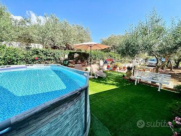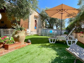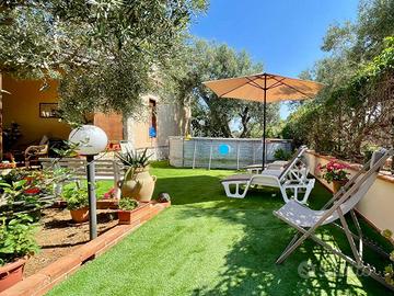 Il giardino è un vero angolo di paradiso, con alberi di ulivo, frutteti e piante ornamentali, creando un'atmosfera di naturalità e bellezza. Gli spazi esterni offrono anche la possibilità di creare un angolo con piscina e patio solarium,...