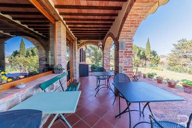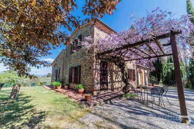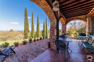 Rif:R07150SIVI (128238302) - Questa straordinaria villa in posizione panoramica unisce il fascino toscano all'eleganza e offre una vista impareggiabile su Cortona. Immersa tra le dolci colline e circondata dai rinomati vigneti di Antinori, la tenuta si presenta come un vero rifugio di tranquillità e privacy. La proprietà si estende su un parco ben curato e completamente recintato di circa 8.000 m² ed è piantumata con 79 ulivi, che conferiscono alla tenuta un autentico carattere mediterraneo. La tranquillità assoluta e l'ambiente idilliaco rendono questa proprietà un rifugio ideale in una delle regioni più belle della Toscana. Un punto di forza particolare è la spaziosa piscina di 6 x 12 metri e profonda 1,4 metri, perfettamente integrata nel paesaggio e che invita al relax. L'offerta esterna è completata da una spettacolare terrazza sul tetto, dalla quale si può godere di una vista mozzafiato sulle colline circostanti fino a Cortona. La villa stessa affascina per il suo stile rustico ma allo stesso tempo elegante, che combina armoniosamente elementi tradizionali con un comfort abitativo di alto livello. Materiali caldi e dettagli raffinati creano un'atmosfera accogliente e sottolineano il carattere di una classica casa di campagna toscana. Nel complesso, si tratta di una proprietà esclusiva che conquista per la sua posizione unica, l'ampio parco, le finiture di pregio e la vista impareggiabile: la casa di campagna perfetta per chi desidera vivere la Toscana nella sua forma più bella. - Classe: F - IPE: 175.00 kWh/mq anno