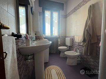 Ispra, località "Case Nuove", via CEE angolo via Manzoni, a 1 km dal centro paese. Villa plurifamiliare edificata nell'anno 1973 e composta da tre appartamenti, ognuno con proprio ingresso privato. Prima unità abitativa (superficie catastale mq 80 sviluppata a piano terreno): ingresso/disimpegno, soggiorno, cucina abitabile, camera matrimoniale, cameretta/studio, bagno e porticato. Alloggio parzialmente ristrutturato, in ottimo stato di presentazione generale, certificato in classe energetica "E" - IPE 189,81 kWh/m2a. Seconda unità abitativa disposta si due livelli (superficie catastale mq 110 sviluppata tra piano terreno e primo): Ingresso/disimpegno, soggiorno, cucina semi-abitabile, vano scala, camera matrimoniale, cameretta/studio, bagno e balcone. Alloggio con finiture e impiantistica risalenti all'epoca costruttiva, in buono stato di presentazione generale, certificato in classe energetica "F" - IPE 240,05 kWh/m2a. Terza unità abitativa (superficie catastale mq 160 sviluppata a piano primo): ingresso/disimpegno, soggiorno, cucina abitabile, studio, due camere matrimoniali, bagno e balconi. Alloggio con finiture e impiantistica risalenti all'epoca costruttiva, in discreto stato di presentazione generale, certificato in classe energetica "F" - IPE 235,77 kWh/m2a. A piano terreno, per complessivi mq 50 circa, vano autorimessa, bagno di servizio, lavanderia e locale tecnico con un'unica caldaia a servizio di tutti e tre gli appartamenti. La proprietà immobiliare vede la presenza di un'area pertinenziale esterna, privata e comune di mq 500 delimitata da recinzione. Il fabbricato è servito da un'unica utenza relativa alla fornitura di acqua sanitaria, mentre ogni singolo appartamento dispone di un proprio contatore della corrente elettrica. La vendita viene eseguita in blocco, non si valuta la cessione frazionata. La villa si presta a soluzione bifamiliare o unifamiliare con l'esecuzione di opere murarie per diversa suddivisione degli spazi.