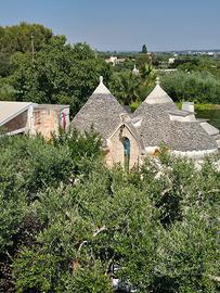 L'immobile è composto da una villa (soggiorno, cucina, bagno, due camere da letto, terrazzo, portico, pannelli solari, magazzino seminterrato, pompa di calore, batteria di accumulo, termosolare e caminetto con impianto a pavimento), tre Trulli (con due stanze da letto, bagno e cucina) e Dependance (pergolato 100m°, forno a legna con soggiorno e relax). Due pozzi di raccolta acqua, le strutture sono indipendenti, autonome con possibilità di separarle. Terreno di 3540 m°, con piante da frutta ed ulivi.