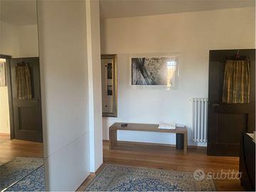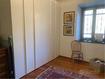 La zona notte comprende un salottino/studio, una spaziosa camera padronale dotata di bagno, unulteriore stanza da letto e un secondo bagno completo. Il piano è arricchito da due balconi, perfetti per godere la vista sul verde.