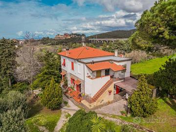 Rif:R05148SVVI (110153591) - In una posizione eccellente, a pochi minuti dal cuore pulsante di San Vincenzo e dal mare, questa villa non solo offre il lusso di uno stile di vita rilassato, ma anche viste mozzafiato sul mare e sulla campagna circostante. Distribuita su due piani, questa proprietà offre fantastiche viste panoramiche e la possibilità di essere suddivisa in tre spazi abitativi separati. Questa opzione è perfetta per le famiglie che desiderano vivere con più generazioni sotto lo stesso tetto o come investimento in alloggi per le vacanze. L'aria condizionata è già installata in diverse stanze, garantendo un clima interno piacevole anche nei mesi estivi più caldi. La proprietà si estende su un ettaro di terreno recintato, nascosto dietro un cancello privato che garantisce il massimo grado di privacy. L'ampio terreno è un paradiso privato e ospita una ricca varietà di piante, tra cui ben 50 ulivi. La villa è dotata di un sistema di accumulo dell'acqua piovana a basso consumo energetico che può essere utilizzato per l'irrigazione sostenibile del giardino. Non esitate e acquistate! - Classe: G - IPE: 175.00 kWh/mq anno