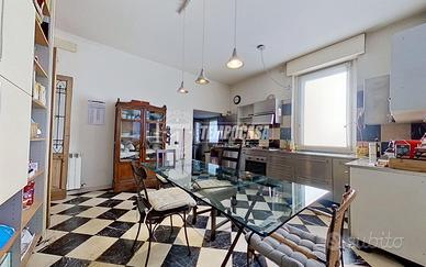 La cucina, di generose dimensioni, è uno spazio che unisce funzionalità e comfort: ampi piani di lavoro, area pranzo e doppia finestra che garantisce luce naturale tutto il giorno. L'ampia metratura rende la cucina il cuore pulsante della casa.