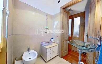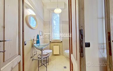 Al piano rialzato l'ingresso si apre direttamente su un ampio e luminoso soggiorno, caratterizzato dal pavimento d'epoca recuperato, dalla doppia finestratura e dai soffitti alti che ne valorizzano il carattere. La luce naturale entra da ogni lato, creando un'atmosfera accogliente e confortevole e gli spazi generosi rendono l'ambiente ideale sia per momenti di relax che per momenti di convivialità.