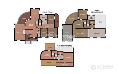 Al piano seminterrato si trovano la zona cantina e la lavanderia, mentre il piano primo accoglie la zona giorno e la zona notte, offrendo ambienti ben distribuiti e funzionali. Il piano sottotetto completa la villa con stanze versatili, ideali come studio, locale hobby o ripostiglio, con accesso diretto a due terrazzi panoramici. Completano la soluzione ampio giardino e doppio box auto.