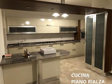 al piano rialzato soggiorno con camino, collegato alla cucina con terrazzo