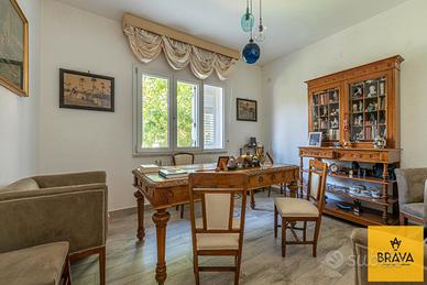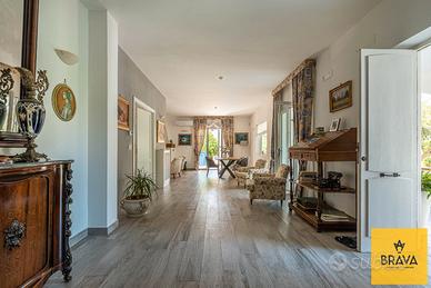 Varcando l'ingresso, si viene accolti da un salone triplo di straordinaria luminosità, impreziosito da un camino che rende l'atmosfera calda e familiare. Dall'altro ingresso, invece, si accede a una grande cucina abitabile, cuore della casa, ideale per chi ama vivere la convivialità con gusto e praticità. Al piano terra trovano spazio anche uno studio, una camera versatile e un bagno con doccia. Il portico di circa 40 mq, con il suo fascino discreto, diventa un invito naturale a proseguire verso il giardino, dove quiete e natura si fondono in perfetta armonia.
