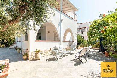 Gli spazi esterni sono stati progettati con grande cura: oltre all'ampio giardino, in parte pavimentato, vi sono una zona barbecue, una cucina esterna, due docce all'aperto e tre comodi posti auto scoperti.