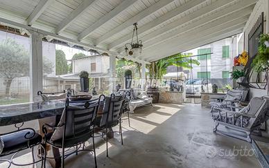 Un chicca è il portico di circa 30 mq, perfetto per pranzi e momenti di relax all'aria aperta!! Il giardino privato è suddiviso in due aree: una pavimentata per il parcheggio e una a prato, curata e godibile in ogni stagione.