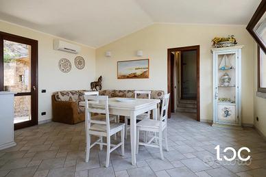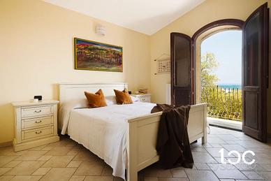 al piano terra: soggiorno vista mare, comoda cucina con dispensa, camera matrimoniale con balcone vista mare, camera doppia, bagno con box doccia,