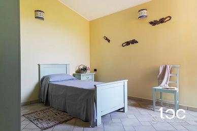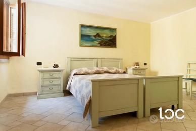 Al piano inferiore: camera singola con l'accesso alla corte esterna, una camera matrimoniale, un bagno con box doccia e uno sgabuzzino.