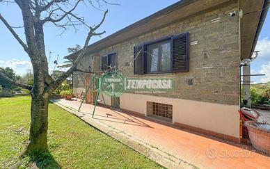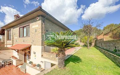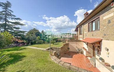 Immersa nel verde e circondata da un giardino privato di circa 600 mq, la villa si sviluppa su due livelli per un totale di circa 200 mq commerciali, con spazi ampi, ben distribuiti e luminosi. L'esterno, rifinito in pietra e tufo, richiama lo stile tipico della zona, integrandosi perfettamente con l'ambiente naturale circostante.