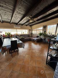 vendesi villa unifamiliare a Bagheria Vendesi villa unifamiliare di 230mq circa e dependance di 50mq circa. Ingresso principale con cancello automatico carrabile su due posti auto coperti, cancello automatico pedonale e un secondo cancello carrabile per facile accesso al giardino. La villa è così composta: ingresso al piano terra su ampio salone, cucina, soggiorno luminoso, bagno padronale con vasca, camera da letto matrimoniale e ripostiglio. Al piano primo troviamo una camera singola, due camere da letto matrimoniali e un bagno con doccia; il tutto con rifiniture ottime. La villa inoltre ha uno spazio esterno di circa 1250 mq con diversi alberi da frutto e piante ornamentali. La villa dispone anche di una depandance di pertinenza di circa 50mq totalmente rifinita composta da: ingresso su cucina\soggiorno ampio, bagno con doccia e camera da letto con cabina armadio. La villa gode di una vista panoramica, ottima scelta per chi ama stare lontano dal caos cittadino ma a soli 10 minuti dallo svincolo autostradale di bagheria. La villa è dotata di certificato di abitabilità.