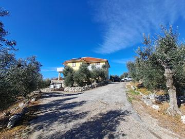 Il Terreno recintato circostante e perimetrale la predetta abitazione è di circa 17.000 mq con alberi di olivo e da frutta in gran parte pianeggiante munito di un comodo accesso dalle strade principali. La particolarità della soluzione posta in vendita è che si trova all'interno del terreno donando riservatezza alla proprietà con strada di accesso nel lotto stesso.