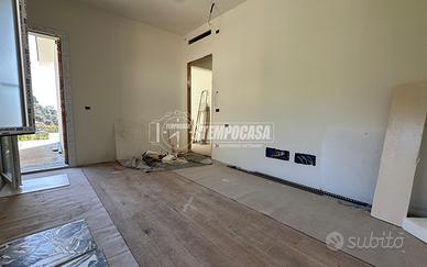 L'interno della villa si sviluppa su due piani, offrendo spazi ampi e luminosi. Al piano terra, si accede a un soggiorno straordinariamente luminoso, grazie alle grandi finestre che permettono una vista panoramica sul giardino circostante. La disposizione degli spazi è perfetta per momenti di relax e accoglienza, con un disimpegno che conduce a un bagno di servizio e una pratica lavanderia. Un ulteriore disimpegno, dotato di una comoda scala, collega il piano inferiore al piano superiore.