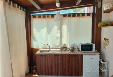 Al piano terra vi è una cucina in muratura con travi in legno, pavimento in cotto e un lavandino antico di fine '800. Attiguo alla stessa vi è una comoda e spaziosa dispensa.